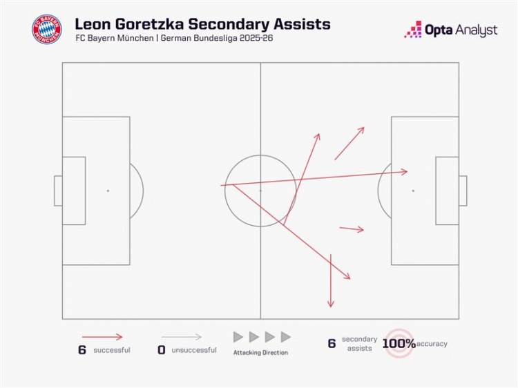 2月6日讯 据Opta统计,拜仁中场格雷茨卡是本赛季德甲送出倒数第二传最多的球员。Opta指出,本赛季德甲联赛,格雷茨卡送出6次进球之前的倒数第二传,所有德甲球员之中最多。格雷茨卡与拜仁的合同今夏到期,届时他将自由身离队。